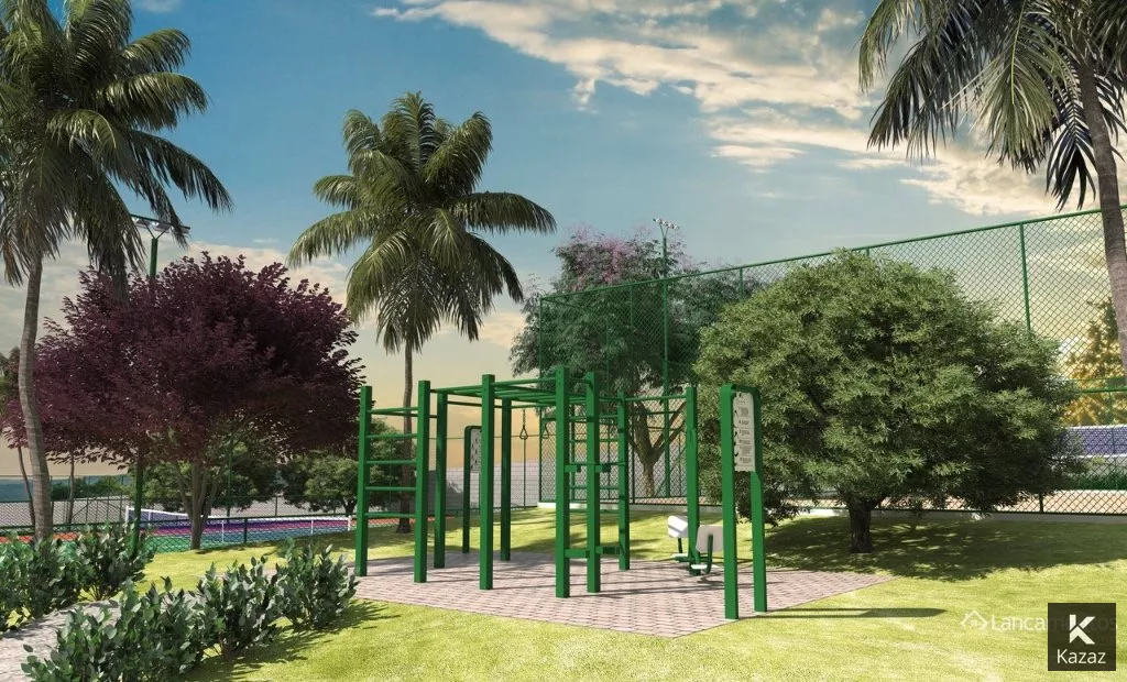Portaria com acesso individual para moradores, visitantes e prestadores de serviços; Vigilância armada 24h; Acessibilidade social universal; Academia; Salão de festas e espaço gourmet; Duas churrasqueiras; Quadra poliesportiva; Campo de futebol, Duas quadras de tênis; Pista de Bicicross; Horta compartilhada; Teatro ao céu aberto; Water play; Piscina borda infinita ; Bicicletário ; Estação Ginastica Ar livre; Quadra de areia ; Mirante ; Skate Park ; Espaço Zen ; Dog play ; Pista de caminhada ; Ciclovia; Duas estações de ginástica.