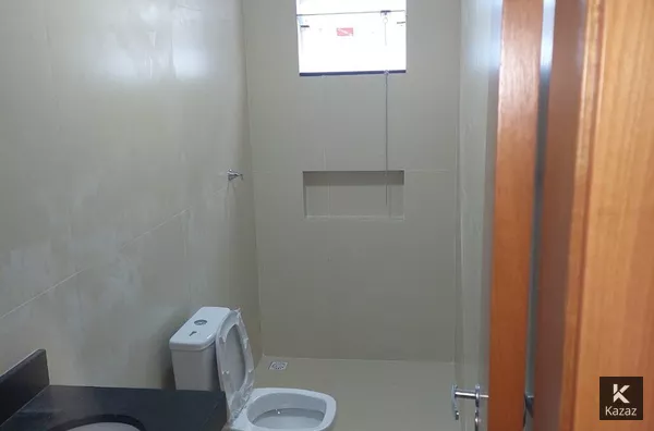 🔵Sala, cozinha, garagem coberta, banheiro social, lavanderia, quintal, Gesso rebaixado, Portas de alumínio na sala e cozinha, Janelas blindex, Piso e revestimento em porcelanato.