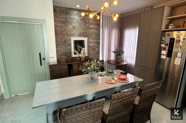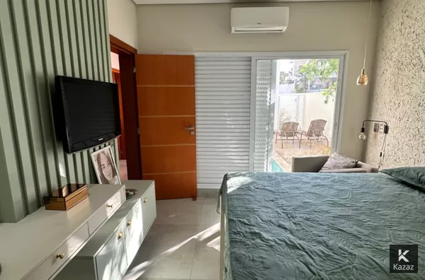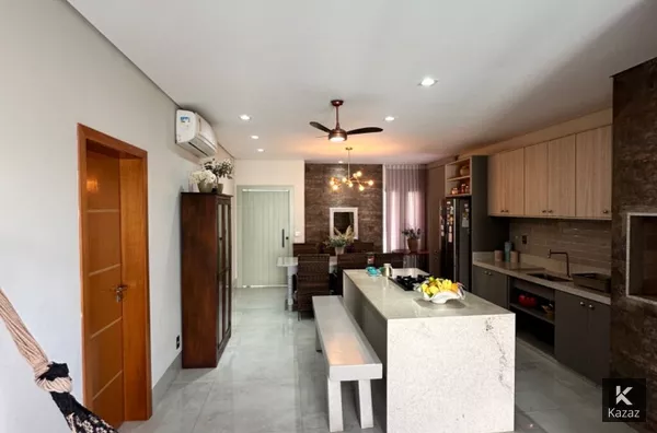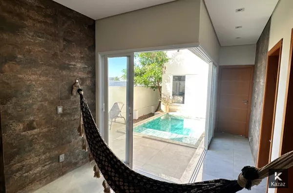 Casa nova térrea com 202 m2, são 3 suites, escritório, sala intima de TV, ambientes climatizados, lavanderia coberta, cozinha gourmet com fogão e coifa instalados, armários planejados novos, churrasqueira, projeto de iluminação, excelente acabamento, piscina e 2 vagas cobertas na garagem.