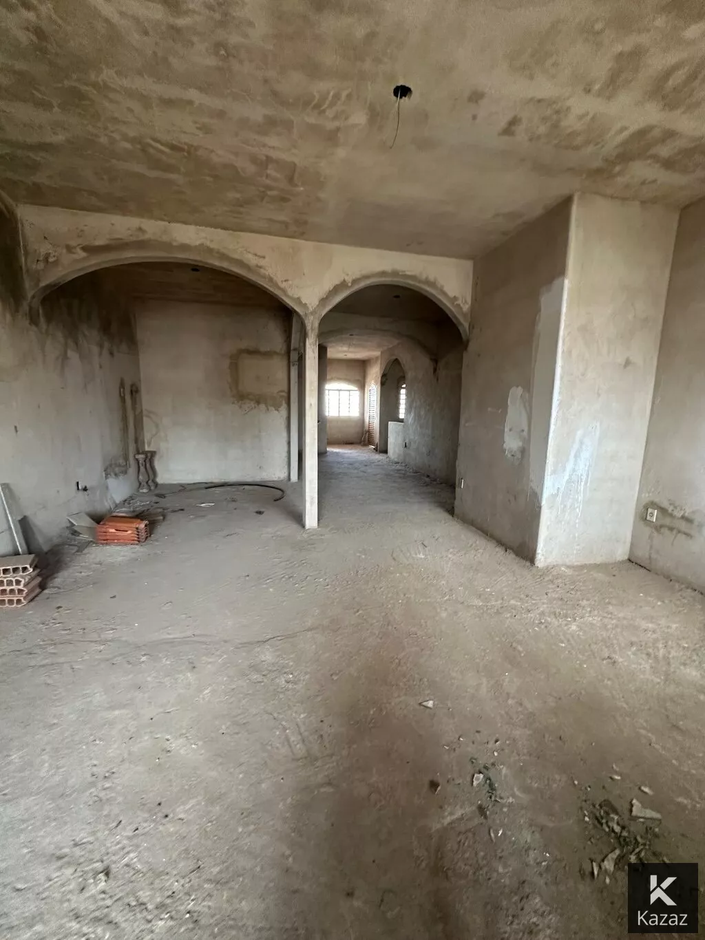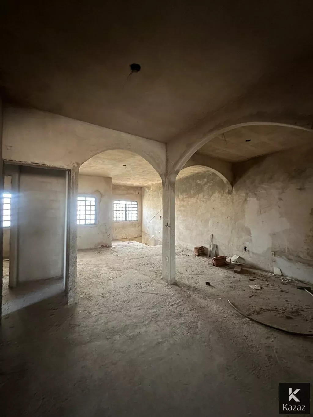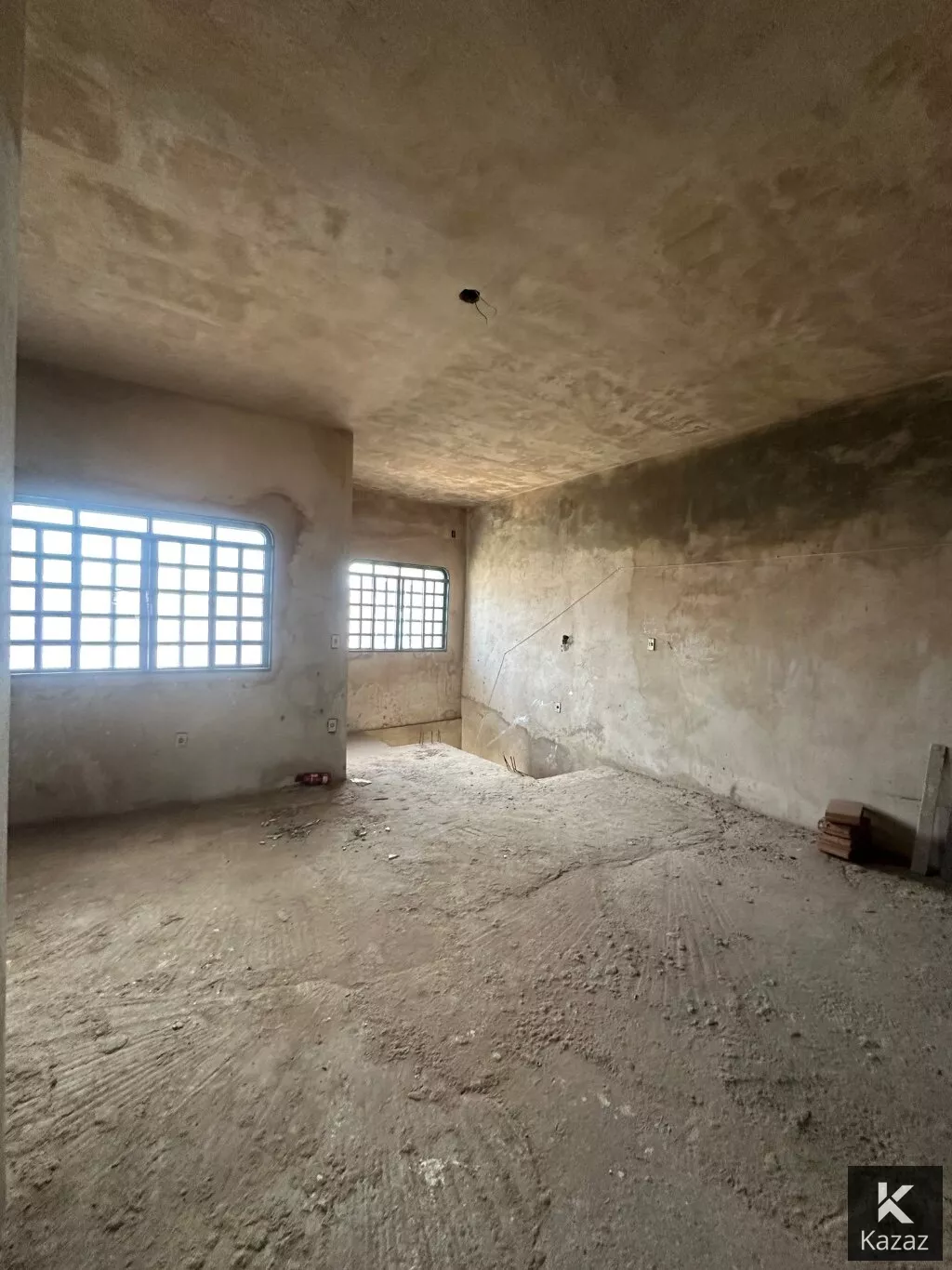 PRIMEIRO PISO: mesma configuração do térreo só que sem acabamento, obra inacabada, só as paredes de alvenaria rebocadas, falta todo o acabamento e revestimentos.